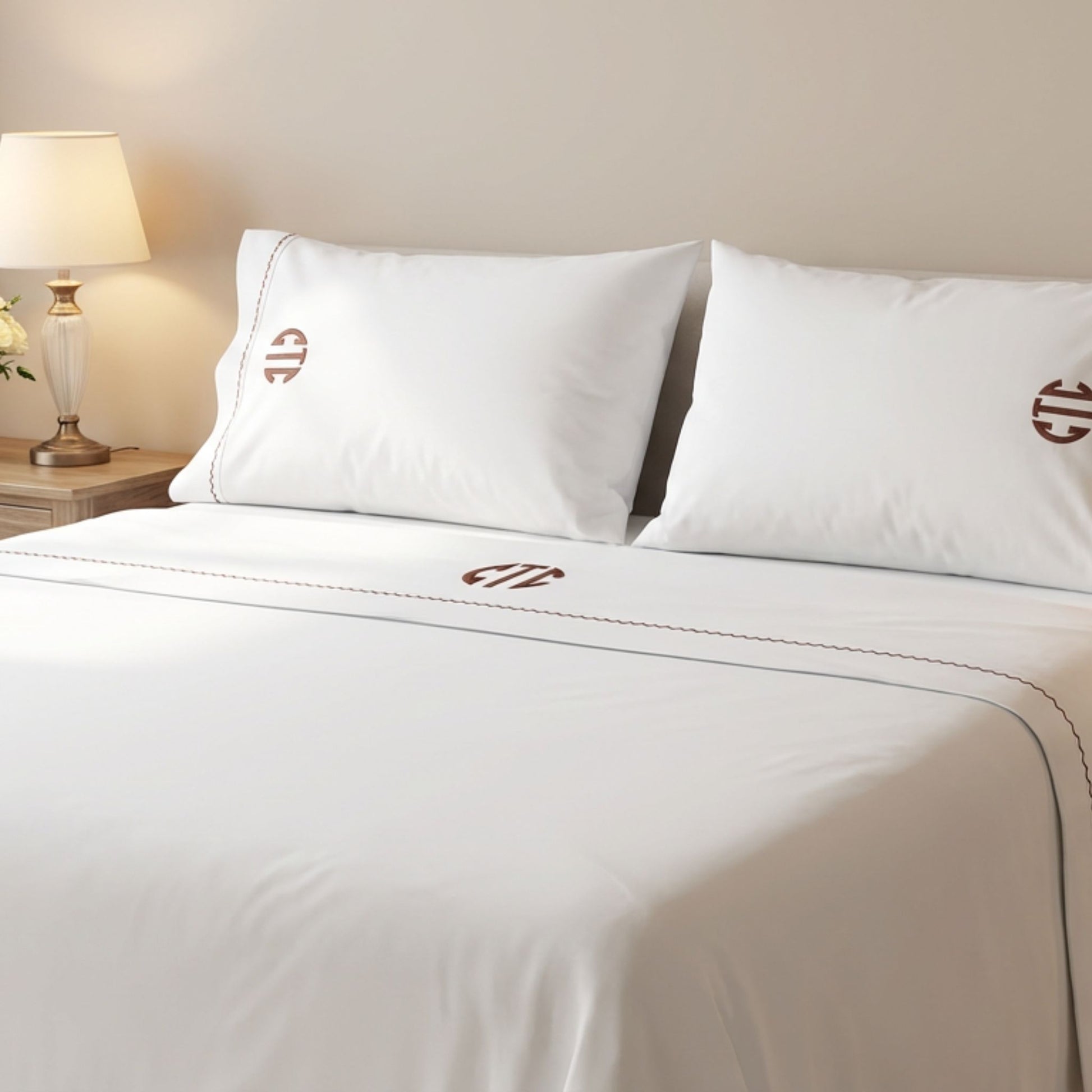 Transform your bedroom into a refined, five-star retreat with our custom monogrammed bed sheet set, crafted from 100% Egyptian cotton with a silky 600 thread count sateen weave.