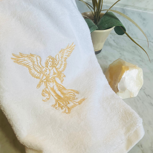 Angel Embroidered Towel Set | Elegant Gold Angel Towels